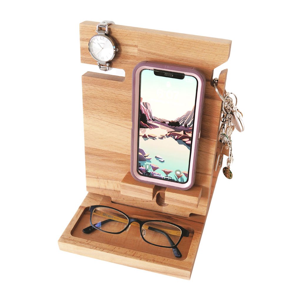 This is the perfect way to store and display your jewellery. If you like all your earrings, necklaces, bracelets, rings and other accessories all in one place, displayed so you can see everything, then this is the perfect jewellery organiser for you. It is compact but has everything you need and want. There’s also an engraving option to add a personal touch to organisers being given as a gift. RRP $108.88. We also love the Simple Docking Station to keep all of your essential items together. It’s perfect for the home study, living room or bedroom. RRP $78.88. www.woodyoubuy.com.au