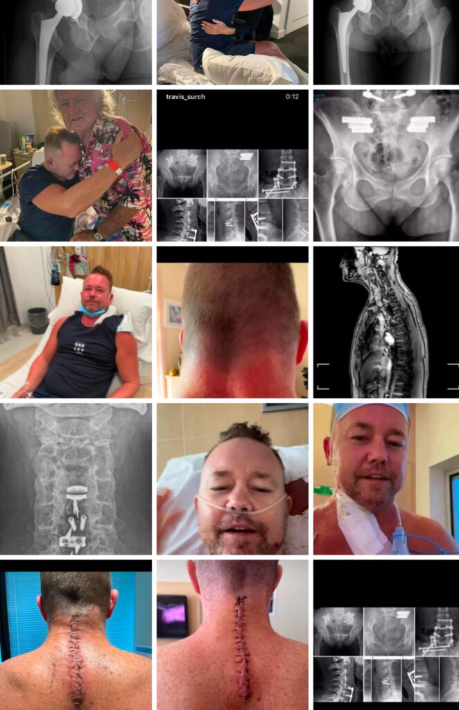 Between 2020 and 2025 to date, he has endured 16 revision surgeries on his brain as well as cervical, thoracic, hips, shoulder, nerve repositioning elbow and hands, as well as SIJ lumbar surgeries.